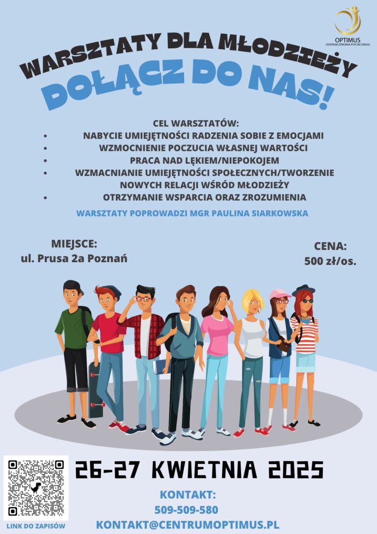 Zmierzymy się z tematami presji rówieśniczej, stresu szkolnego i codziennych lęków. Młodzież wykona ćwiczenia pisemne, które pomogą lepiej rozumieć i oswajać swoje emocje.
